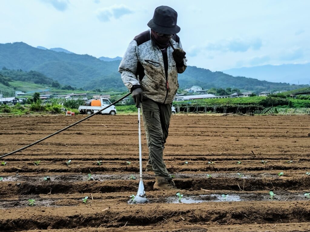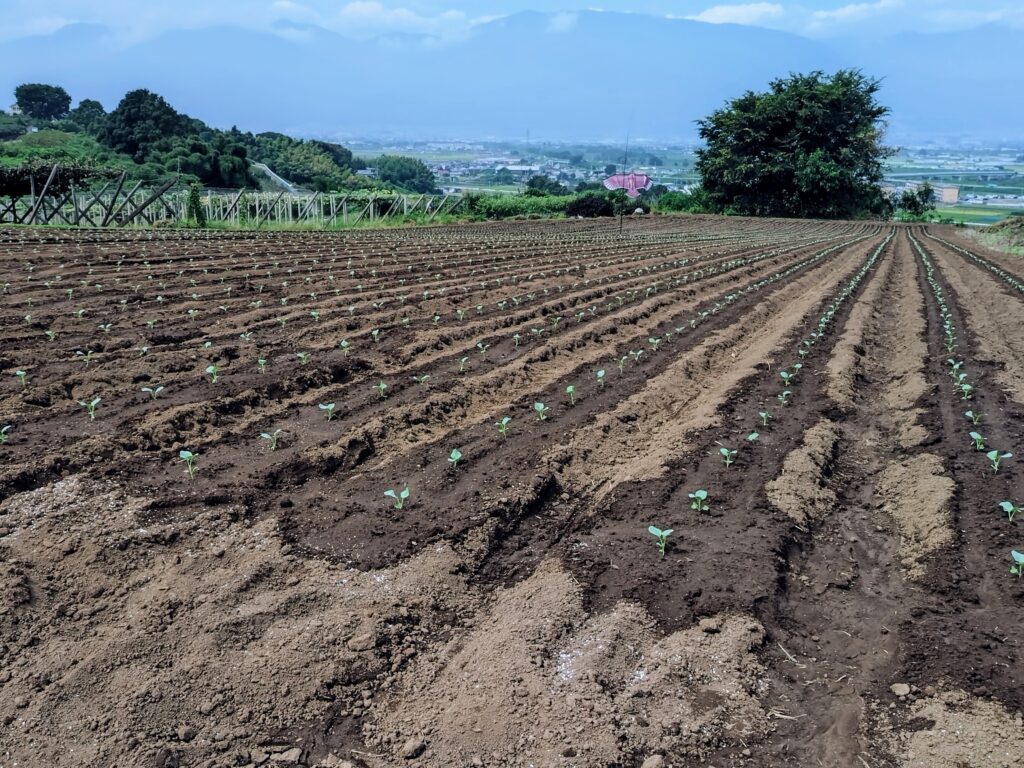 アグリ甲斐では、歩行型移植機を使用して定植を行います。