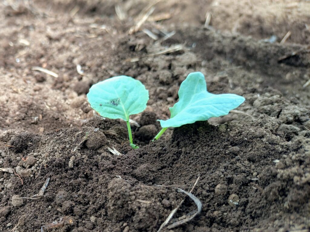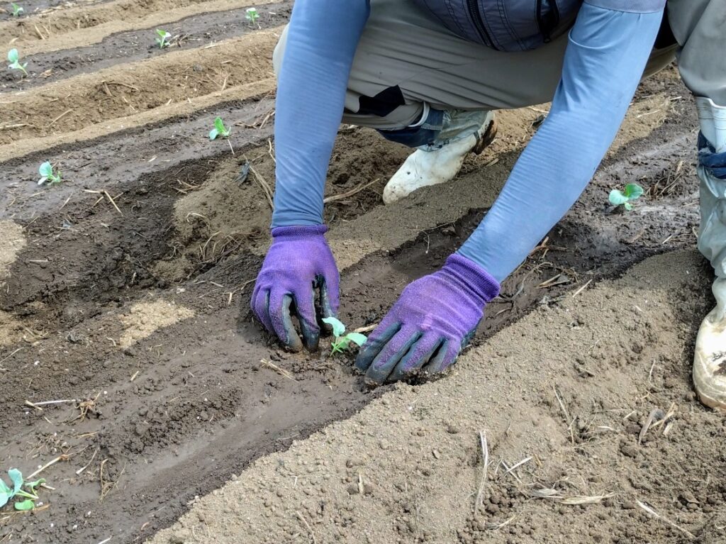 移植後は、深く埋まっていたり、浅く植わっていたり、土がかかっていない苗があるので、確認して調整を行います。
